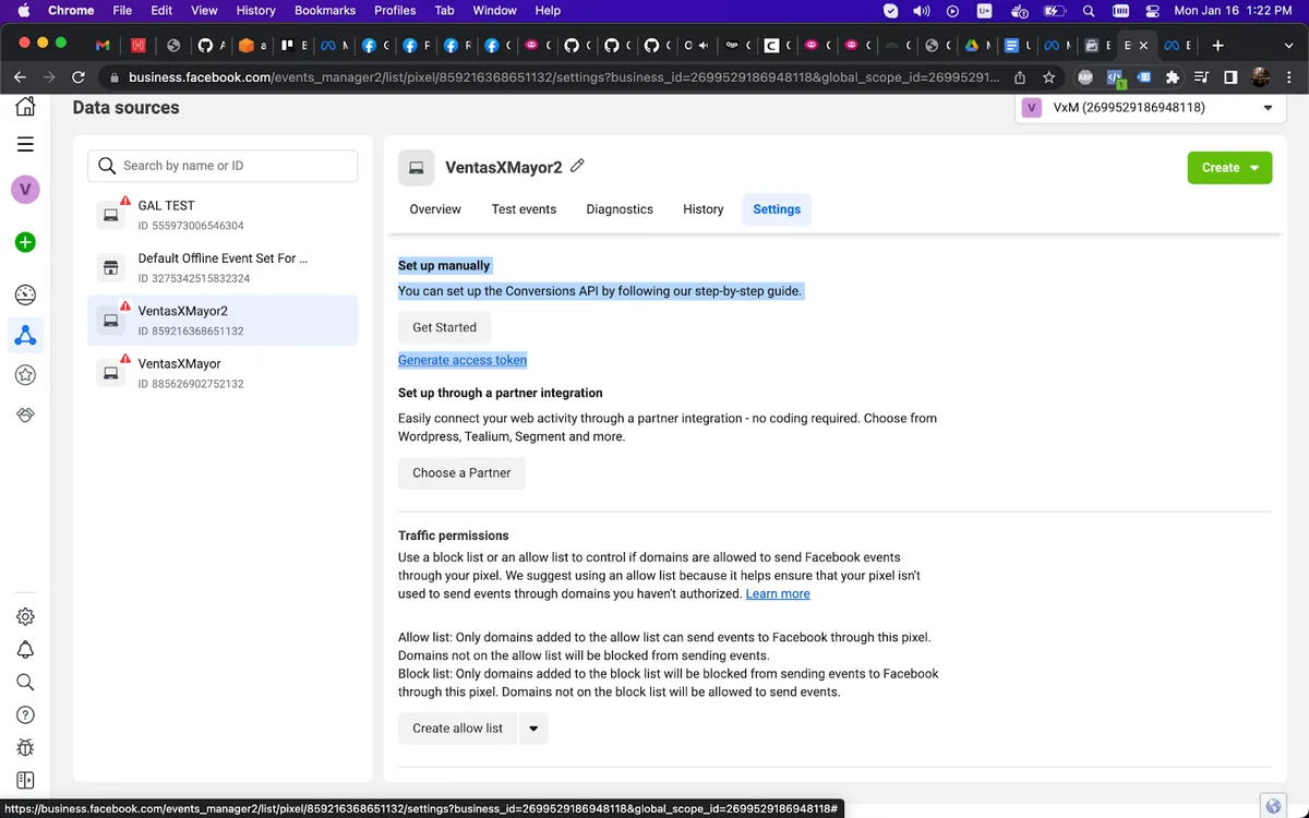 Ingresar al Event Manager en Meta Business Suite: https://business.facebook.com/events_manager2