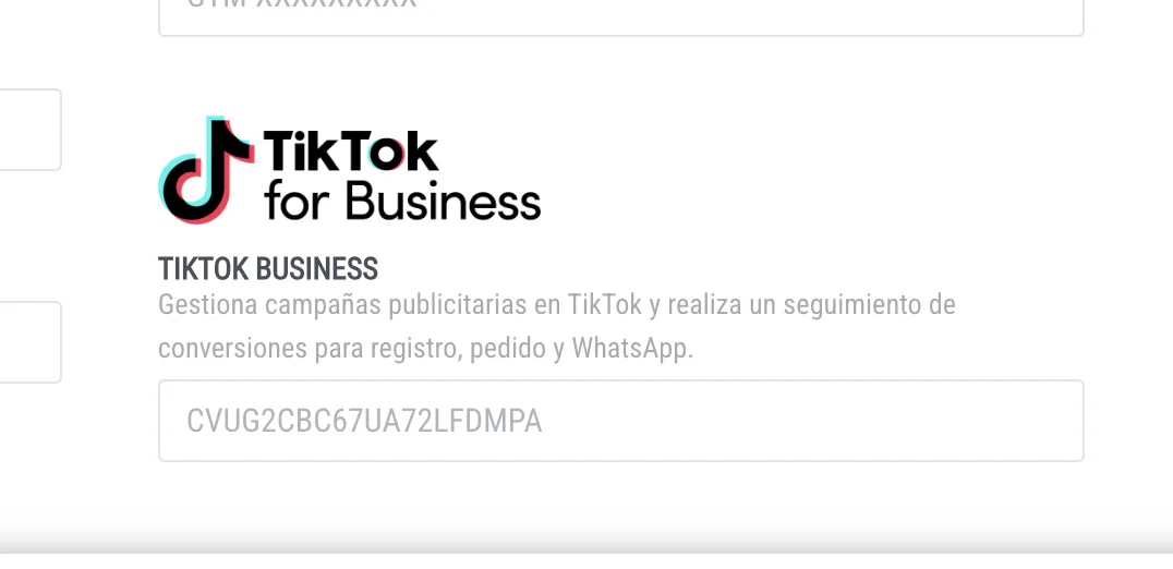 - Andá a la sección "TikTok Business" dentro del área de integraciones (sección de Marketing / Tracking).